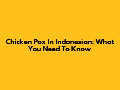 Chicken Pox In Indonesian: What You Need To Know