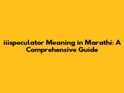 Iiispeculator Meaning In Marathi: A Comprehensive Guide