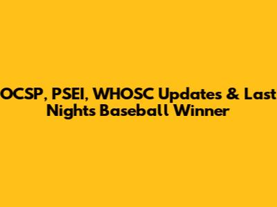 OCSP, PSEI, WHOSC Updates & Last Night's Baseball Winner