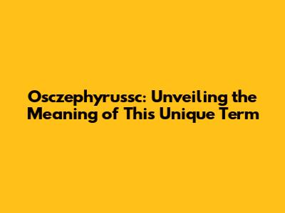 Osczephyrussc: Unveiling The Meaning Of This Unique Term