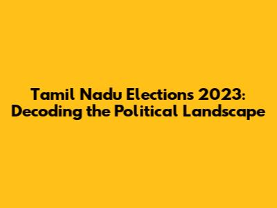 Tamil Nadu Elections 2023: A Comprehensive Guide