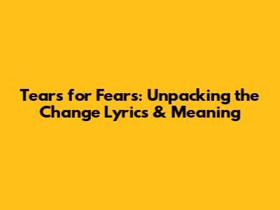 Tears For Fears: Unpacking The Change Lyrics & Meaning